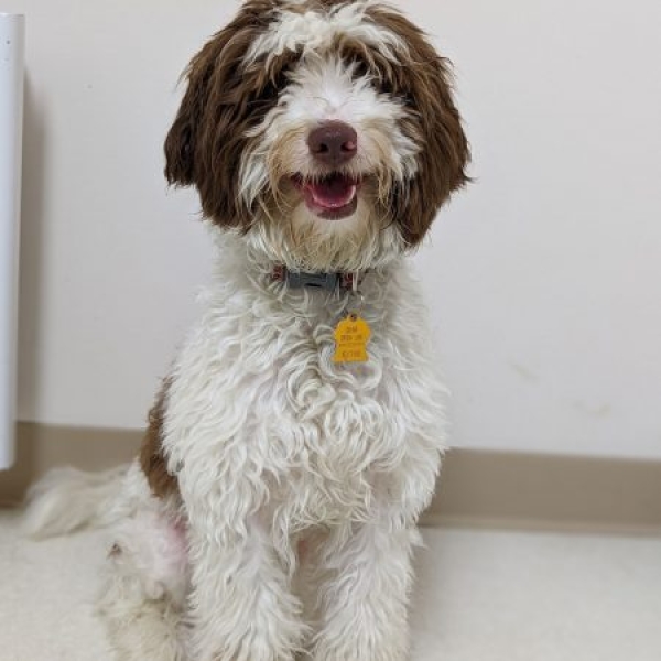 Un superbe jeune mâle de type Caniche croisé âgé de 8 mois et pesant 8 kg.