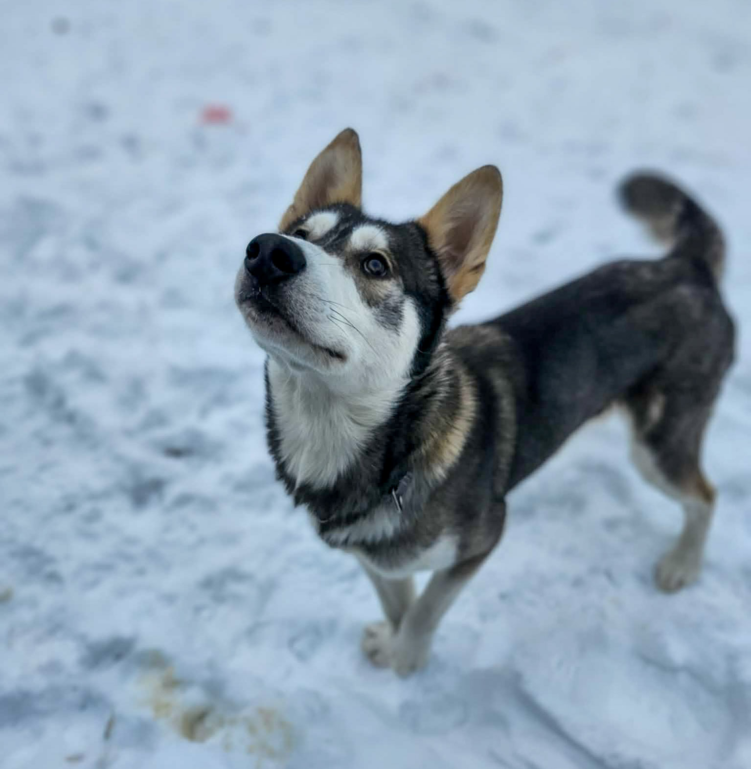 Je suis un gentleman et un conquérant téméraire, amoureux et confiant. À la fois doux, curieux, intrépide et plein d’énergie, je réponds à ma génétique de chien nordique en démontrant un esprit libre, doué pour la résolution de problèmes et adepte d’aventure et de grand air. Toutefois, il est important de savoir que je n’apprécie pas particulièrement être laissé seul, et c’est là que je sors mes plus belles démonstrations de vocalises. Reste à voir si cela persiste en dehors du refuge et si c’est un enjeu qui doit être adressé avec l’aide de professionnels, mais en attendant, sur la majorité des autres aspects, je suis tout ce à quoi on s’attendrait d’un jeune husky comme moi : mesquin, fanfaron, pisteur, enjoué, affectueux et une petite boule d’énergie!