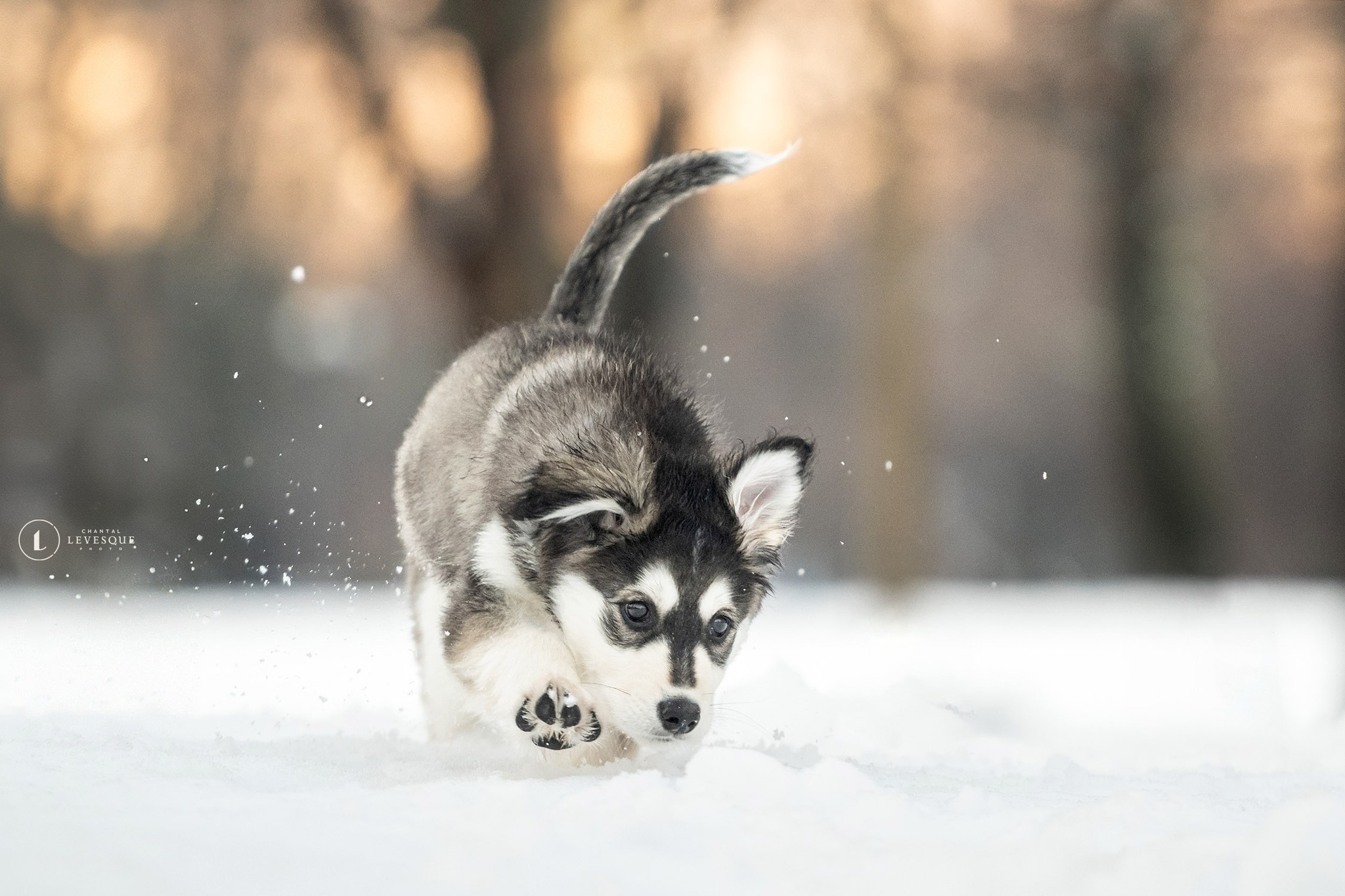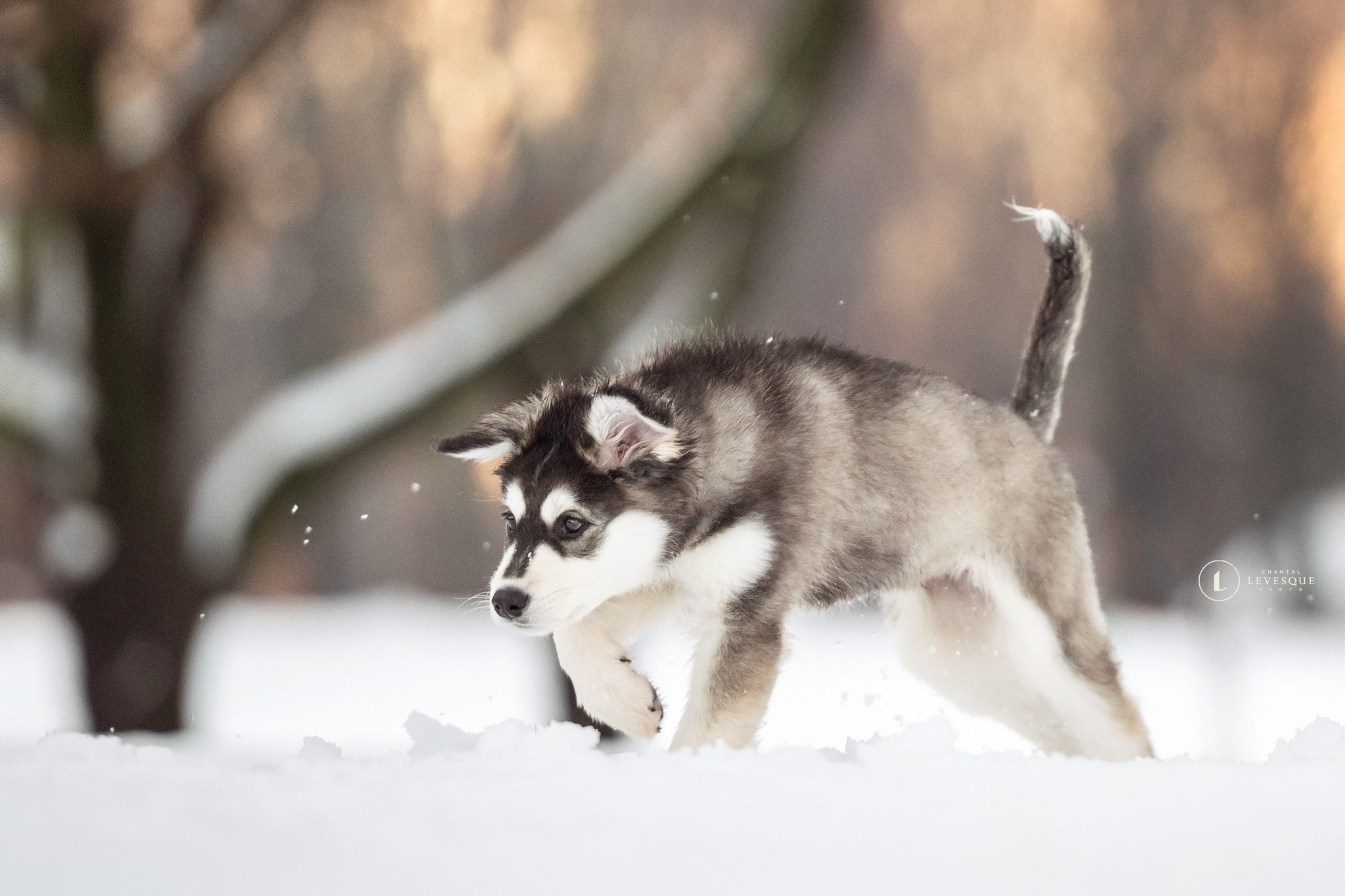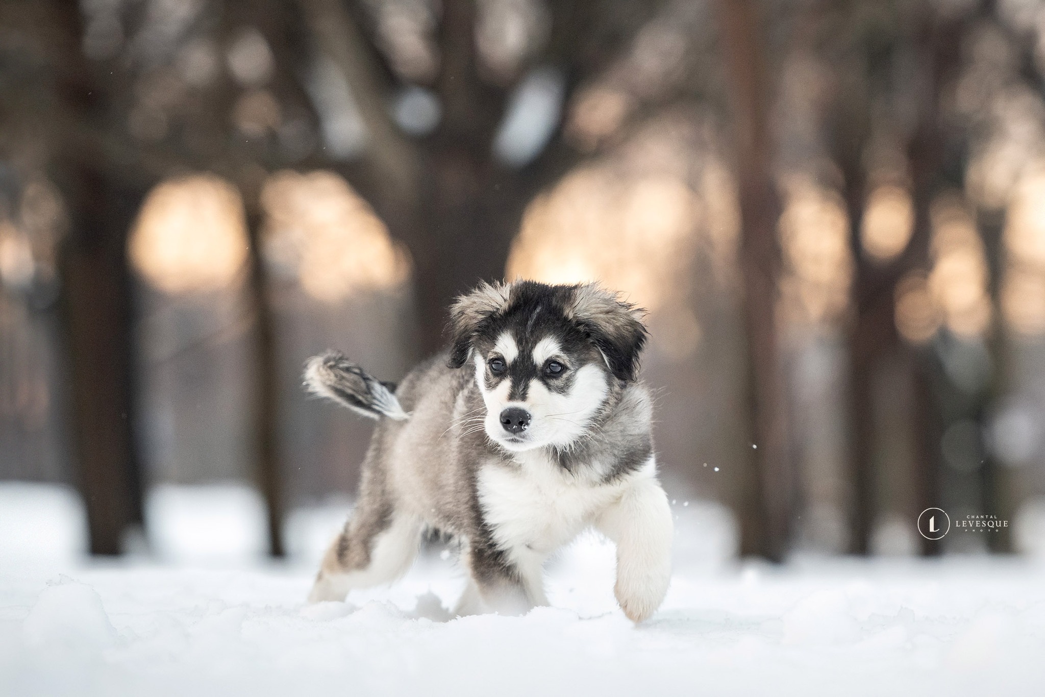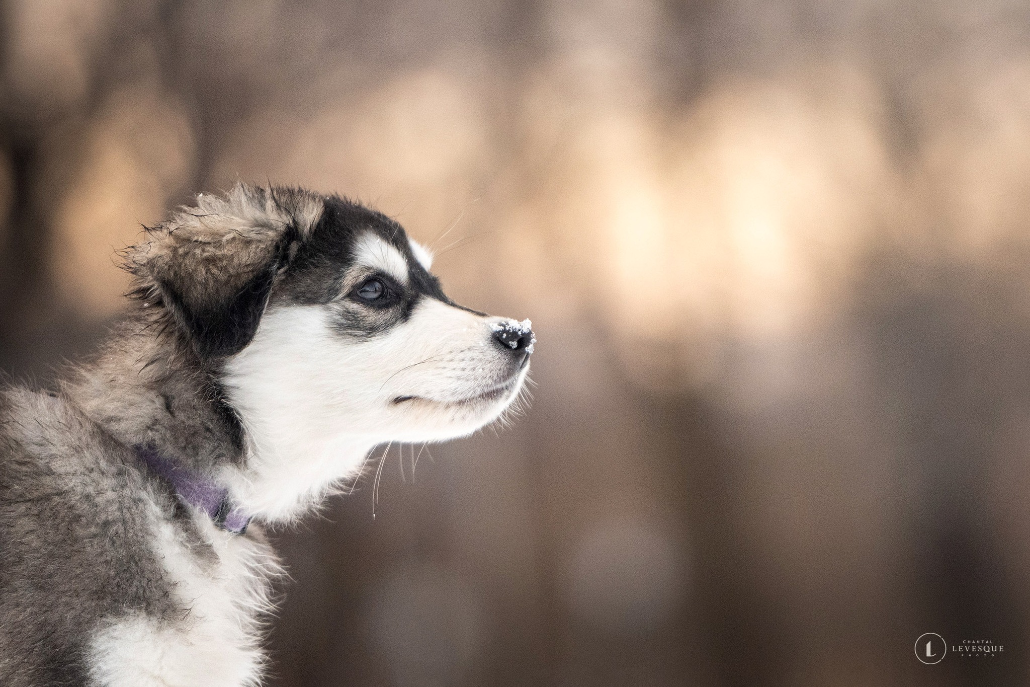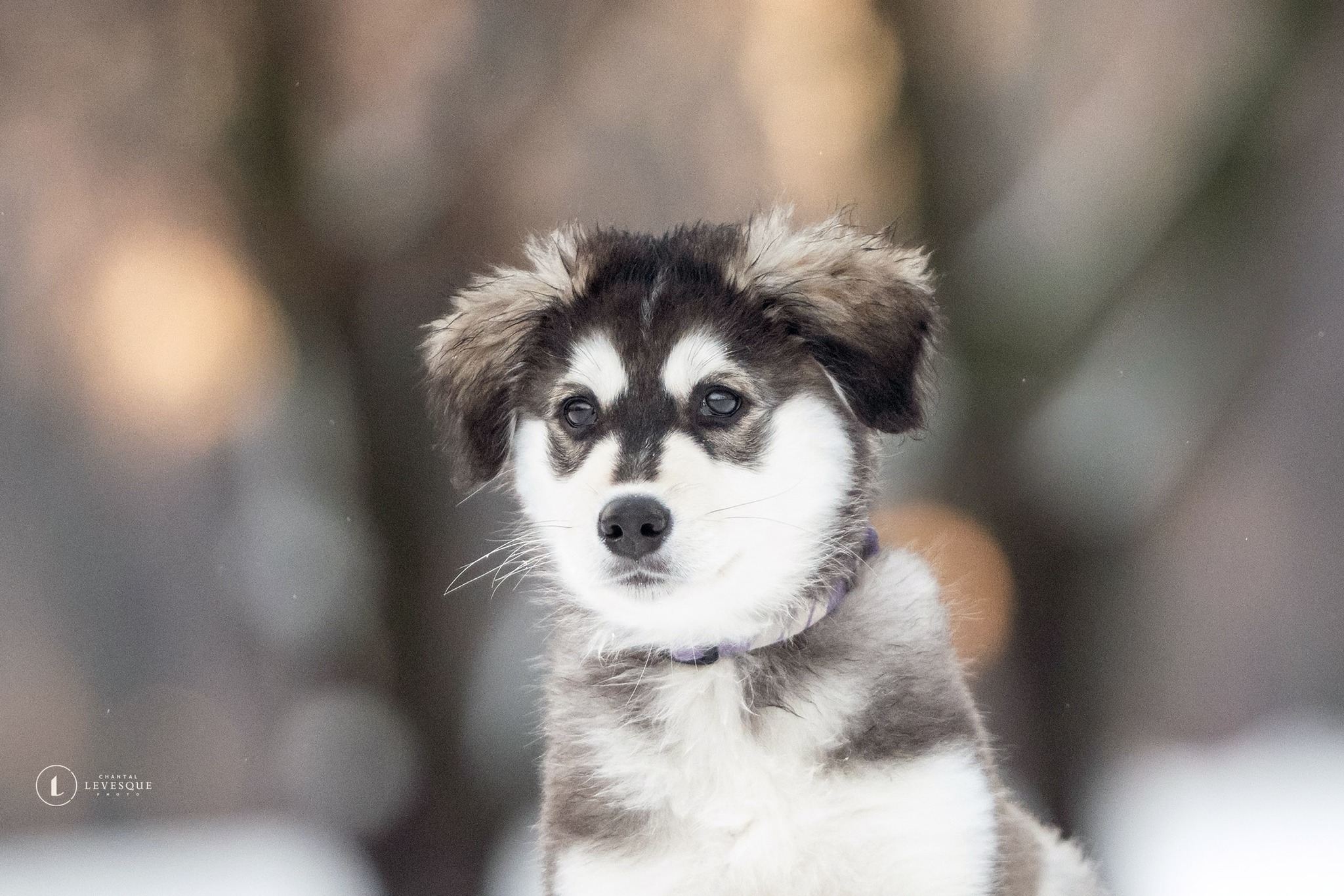 « Je suis l’enjôleur de la famille! Tout le monde succombe à mon charme et à mon petit museau de renard. Je suis adorable et très sociable : je vais vers tout le monde et je suis très facile à aimer. Je suis un chiot équilibré, joueur et actif. J’aime beaucoup taquiner ma sœur! Je voudrais toujours rester près des humains. J’aime beaucoup être le centre de l’attention et courir avec les enfants. »