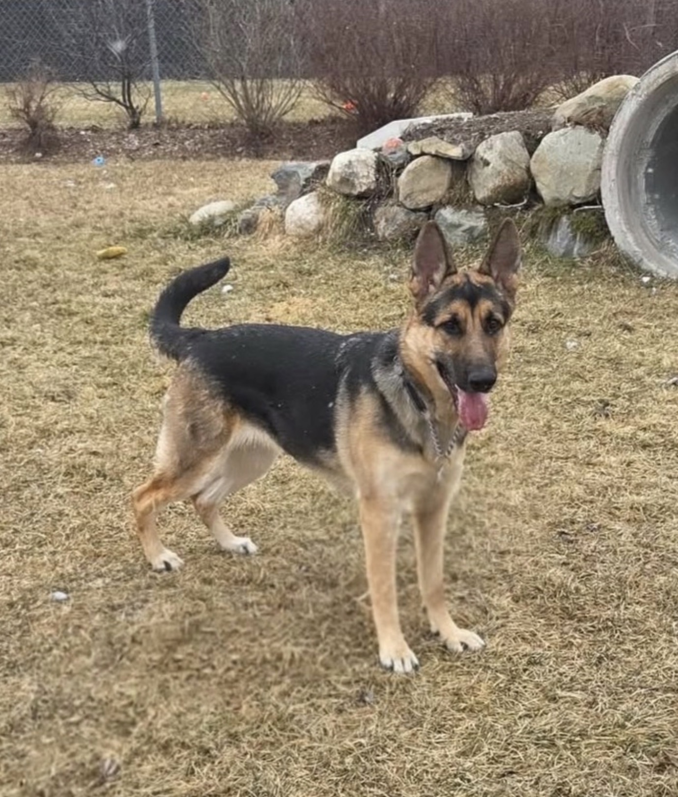 J’ai de l’énergie à revendre et surtout, j’ai besoin qu’on m’aide à bien la dépenser. Si tu aimes bouger, jouer et t’impliquer un peu dans l’éducation d’un chien, on risque vraiment de bien s’entendre. Ce qui me rendrait vraiment heureuse? Avoir un ami chien dans ma vie. J’adore énormément jouer avec eux ! Tellement que, quand j’en croise en promenade, j’ai un peu de mal à garder mon calme… je tire pour aller leur dire bonjour. Disons que mon enthousiasme déborde encore un peu! Avec les humains que je connais, je suis une chouette partenaire: j’aime jouer, me faire flatter et partager des moments complices. J’ai aussi un petit côté chasseuse — les oiseaux m’intriguent beaucoup et j’aimerais bien partir à leur poursuite si on m’en laissait l’occasion. Bonne nouvelle: j’aime manger et j’aime apprendre. Donc avec un peu d’encadrement et d’éducation, j’ai tout ce qu’il faut pour devenir une super chienne, bien dans ses pattes.