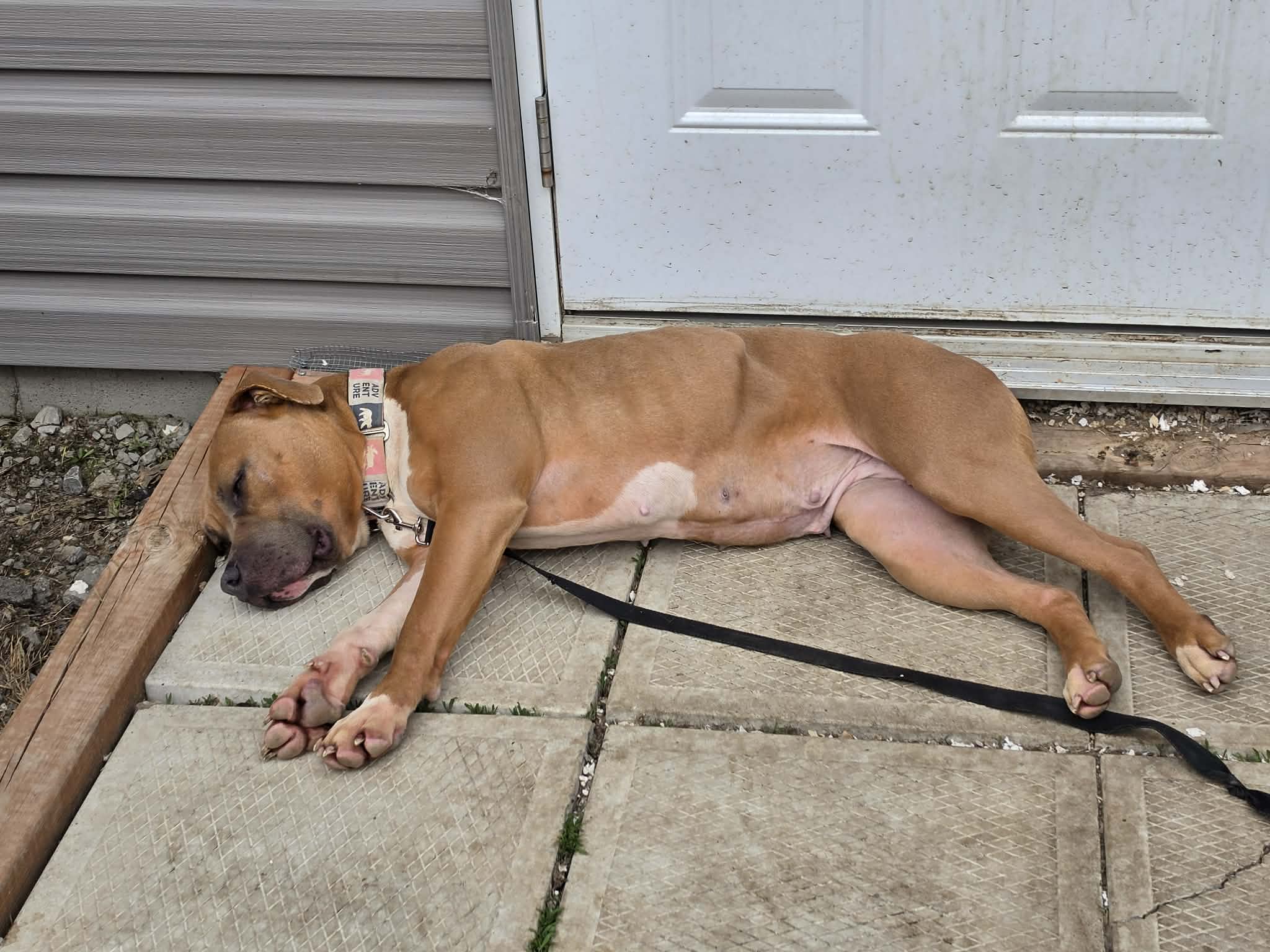 Elle a été abandonnée sur une propriété dans de mauvaises conditions. Malgré ce grand stress qu’elle a vécu, c’est une chienne adorable et gentille.