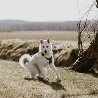 Elle adore aussi les promenades et a un HAUT NIVEAU D’ÉNERGIE ! Elle tire beaucoup au début de la marche dû à l’excitation, mais elle suit très bien ses compagnes canines de la maison! Elle a du potentiel pour les sports attelés lorsqu’elle sera adulte! Même la baignade lui plait, car elle n’hésite pas à sauter dans les énormes trous d’eau rencontrés sur son chemin! Elle est ouverte à tout!