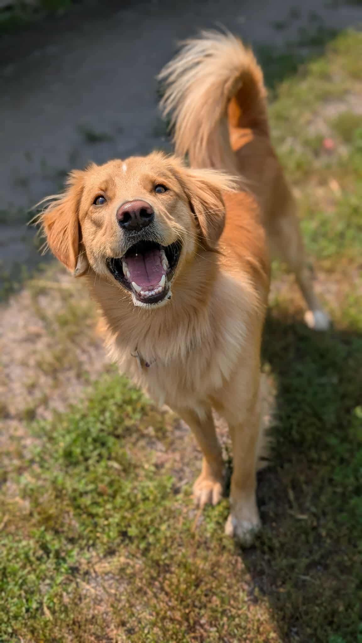 Une magnifique jeune femelle de type Golden Retriever croisé âgée de 9 mois et pesant 25 kg.
