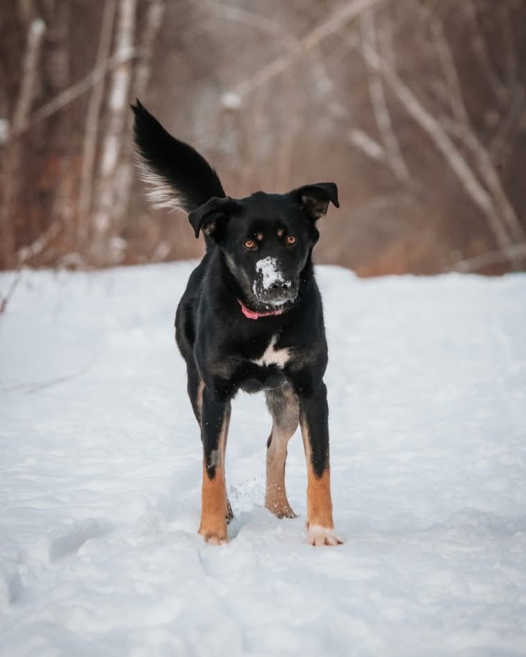Dehors, c’est le pur bonheur! Je cours, je joue et je me roule avec plaisir dans la neige. J’ai un excellent rappel et je ne m’éloigne jamais bien loin. J’adore les marches en forêt et je me débrouille très bien en laisse. Je suis agile, sportive et j’aimerais beaucoup suivre ma future famille dans différentes activités. Une famille active serait parfaite pour moi!