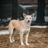 Miratam – signification : sentir – Femelle beige et blanche, 17 kg