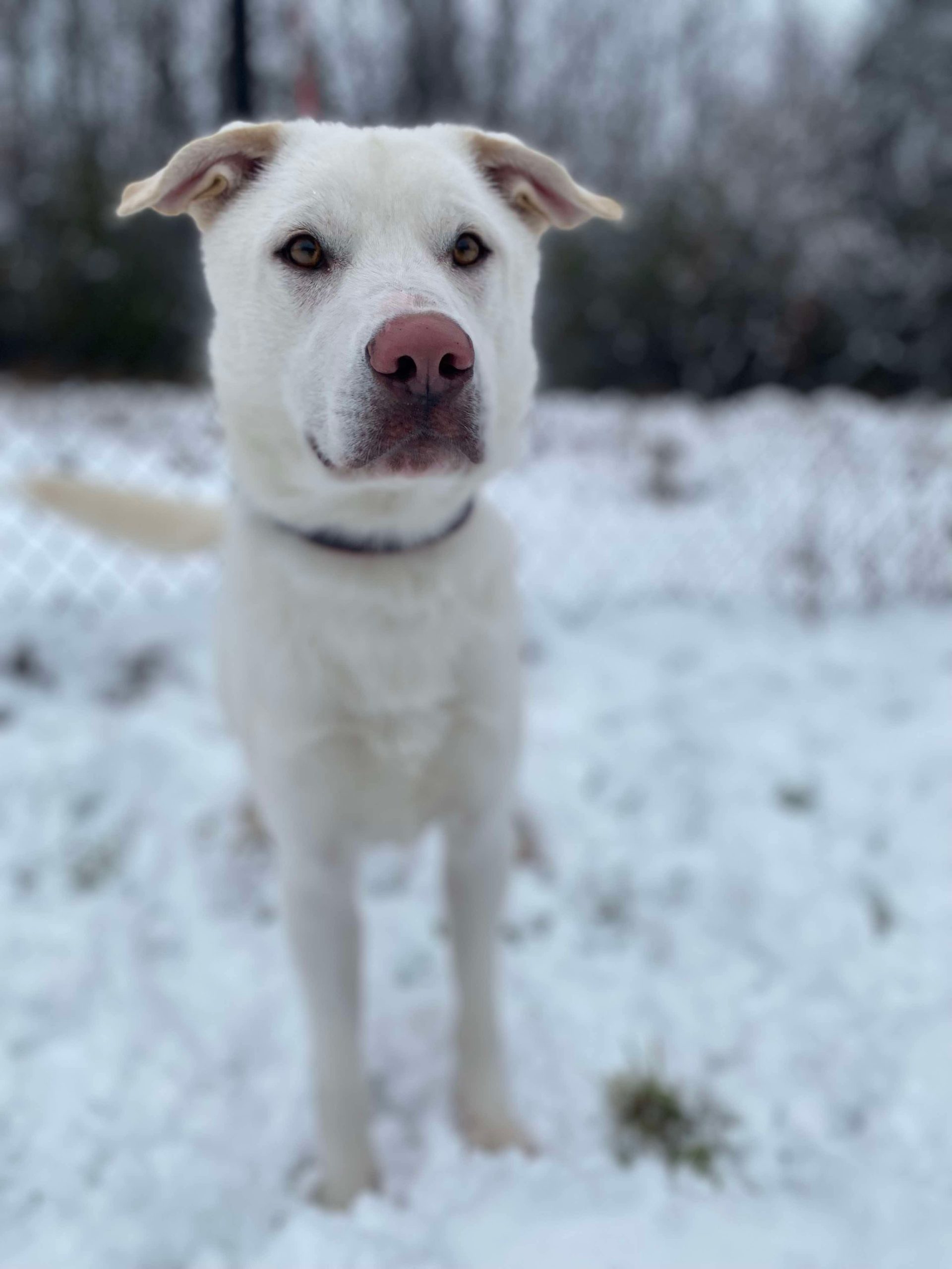 Miratam – signification : sentir – Femelle beige et blanche, 17 kg