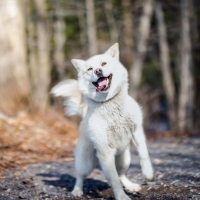 Elle adore être à l’extérieur et se faire griller au soleil. Elle est attachée lorsqu’elle sort seule parce que sa famille d’accueil travaille. Elle aboie quelques minutes, puis elle s’occupe avec ses jouets et ses os. Il peut lui arriver de creuser quelques trous sur le terrain. Elle a un instinct de prédation envers les écureuils et les oiseaux. Ils l’intéressent beaucoup! Elle apprécie grandement les balades en laisse et n’a peur de rien. Par contre, comme elle est très curieuse et énergique, elle tire beaucoup. Elle serait d’ailleurs une EXCELLENTE CANDIDATE pour les SPORTS ATTELÉS de type canicross, bikejoring, skijoring, etc. Elle est excellente pour marcher sans laisse, son RAPPEL étant bien ACQUIS, elle revient lorsqu’on le lui demande.