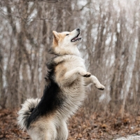 Moose adore les balades durant lesquelles il est libre de courir, de sentir et de gambader. Il n’est donc pas habitué à la marche au pied. Il apprécie beaucoup les moments où il peut rester assis dehors à regarder les feuilles virevolter au gré du vent. Il lui est arrivé de montrer ses talents d’archéologue à ses humains en creusant des trous dans le sol. Cela sera donc à travailler positivement avec lui. Il aime bien jouer avec les chiens de toutes tailles. Il s’entend bien avec tous les chiens peu importe la race. Il ne s’éloigne jamais bien loin de ses humains et il revient dès qu’on l’appelle.