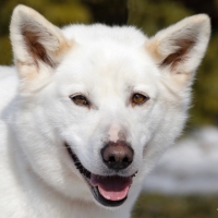 Un superbe mâle de race Husky croisé de 9 mois. Murphy a été secouru grâce au Projet Museaux Nordiques.
