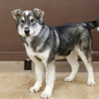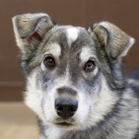 Un beau mâle de race Husky croisé de 6 mois. Il a été secourue du Nord du Québec grâce au projet Museaux Nordiques. Muttluck s’entend bien avec les autres chiens mais pas avec les chats.