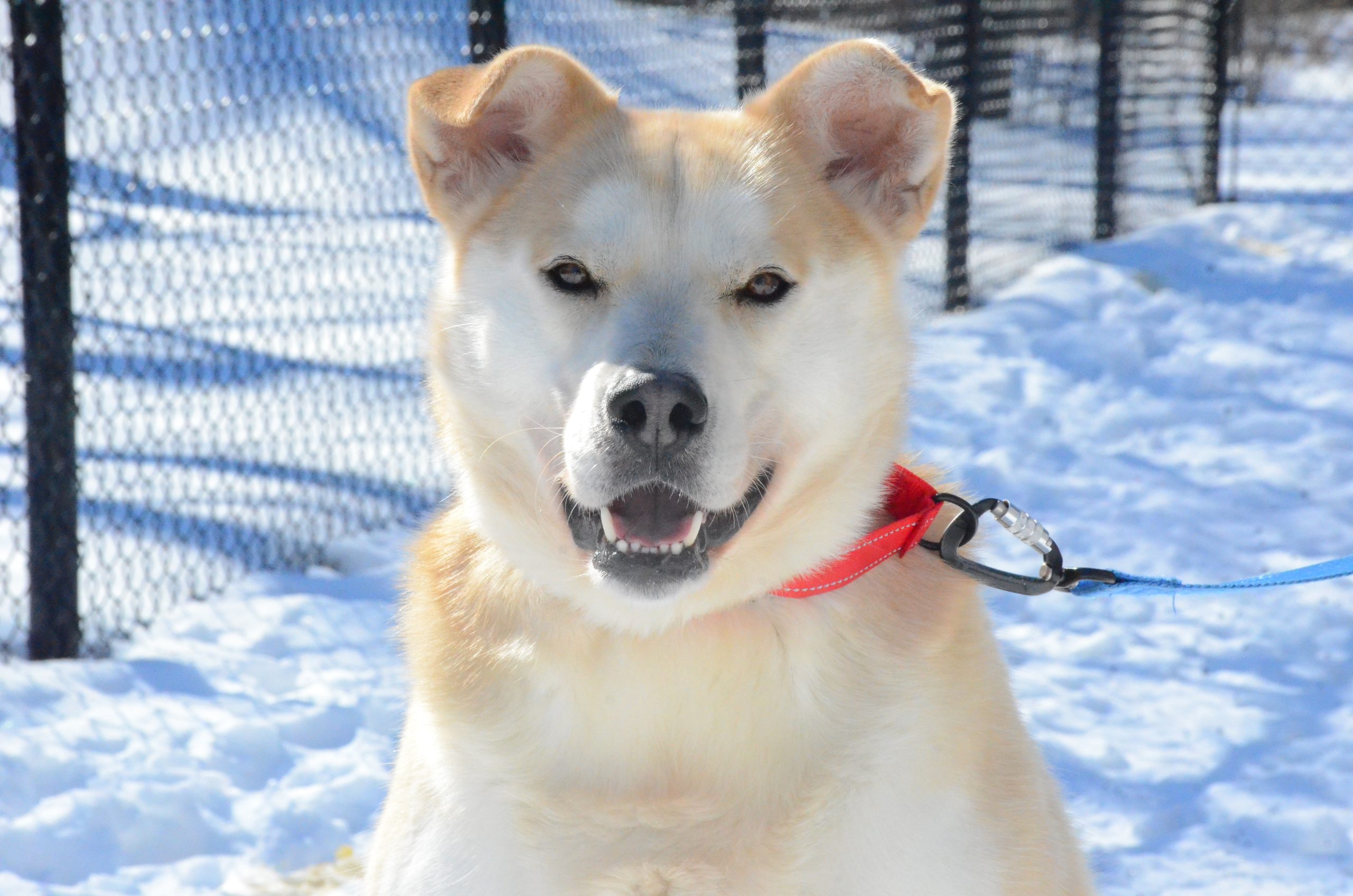 Un beau mâle de race Husky croisé de 6 mois. Il a été secourue du Nord du Québec grâce au projet Museaux Nordiques. Muttluck s’entend bien avec les autres chiens mais pas avec les chats.