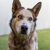 Un superbe mâle de type Husky croisé âgé de 5 ans et pesant 77.6 livres.