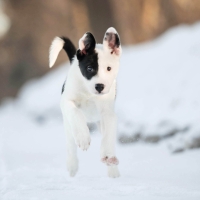 Il aime beaucoup aller jouer dehors et creuser des trous dans la neige. Il aime bien trouver les « failles » de la clôture pour aller explorer plus loin! Il a débuté les balades en laisse, il y a tellement de trucs à sentir!