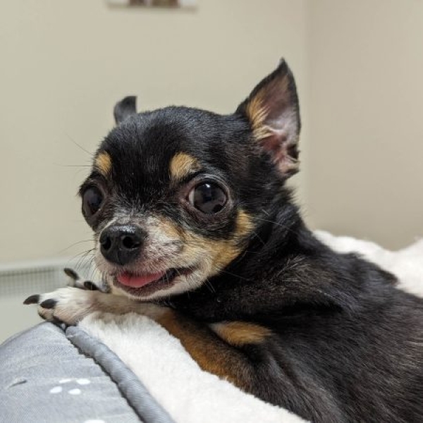 Une gentille femelle d’expérience de type Chihuahua croisé âgée de 8 ans et pesant 2 kg.