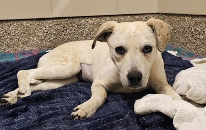 Une adorable femelle de type croisé âgée de 9 mois et pesant 64,5 livres.