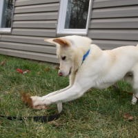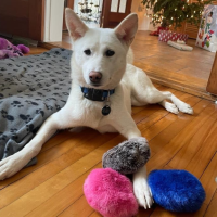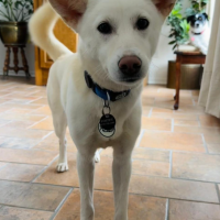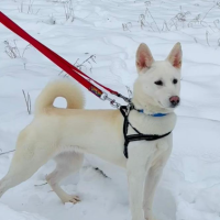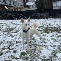 Une magnifique femelle âgée de 10-11 mois de race croisée Jindo. Elle est de petite taille (25 lbs) et présente un niveau d’énergie moyen.