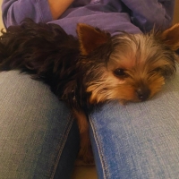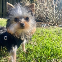 Un adorable petit mâle de type Yorkshire croisé âgé de 6 mois.