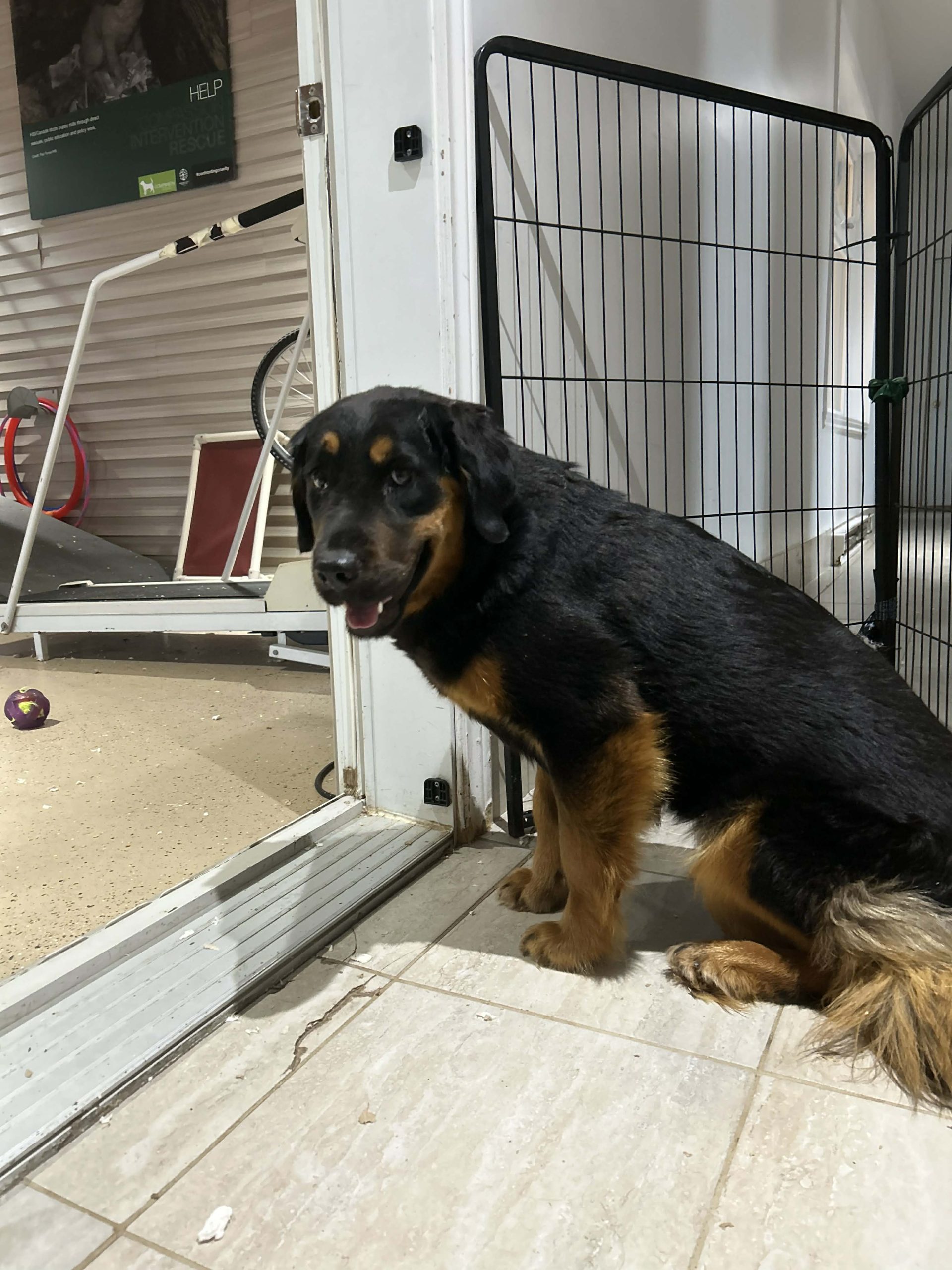 Elle ne sait pas encore marcher en laisse et ne peut pas encore être mise en laisse, donc une cour clôturée est essentielle pour assurer sa sécurité.