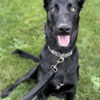 Un magnifique jeune mâle de type Berger alllemand croisé Labrador âgé de 7 mois et pesant 61 livres. Il est en parfaite santé.