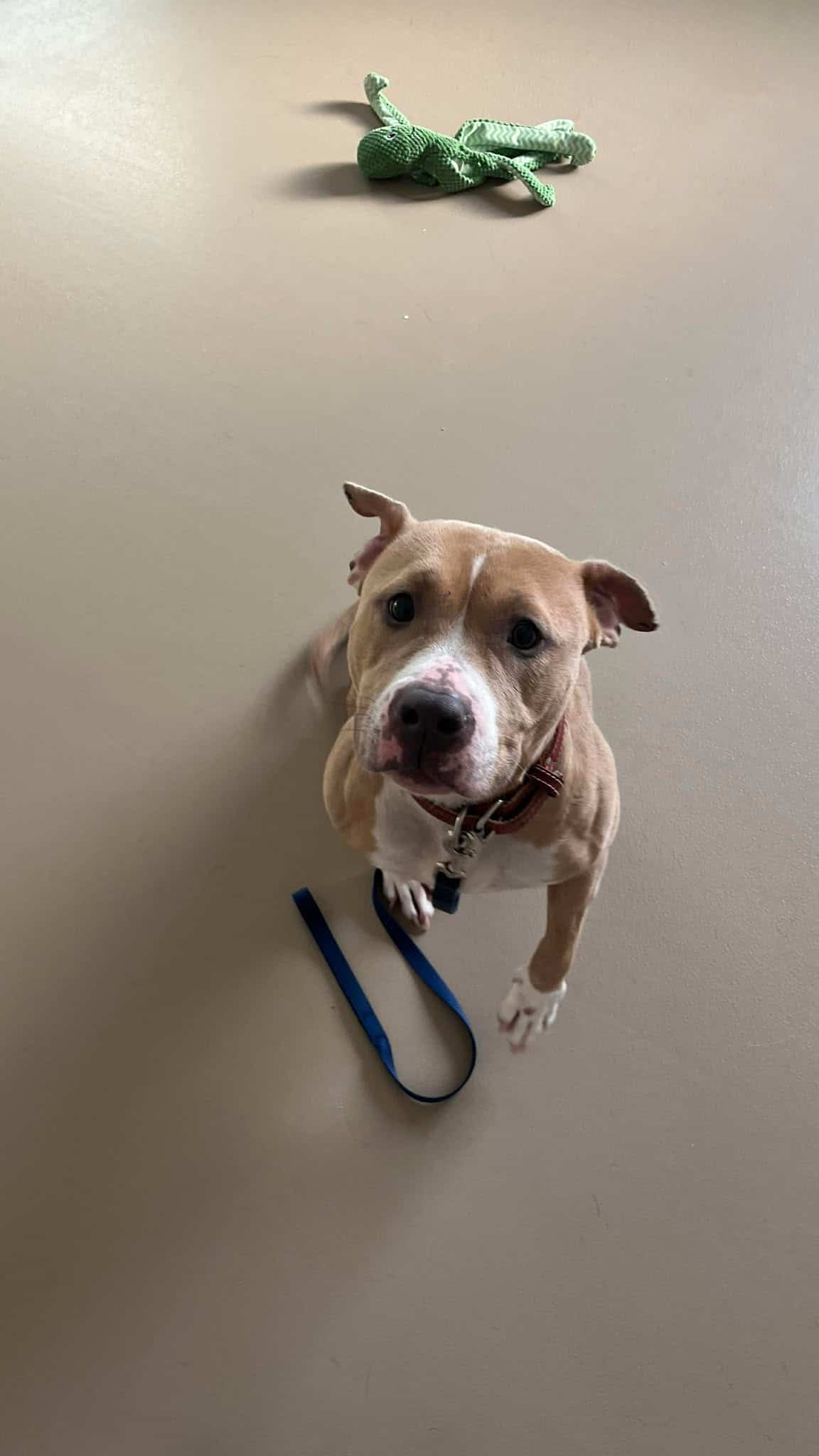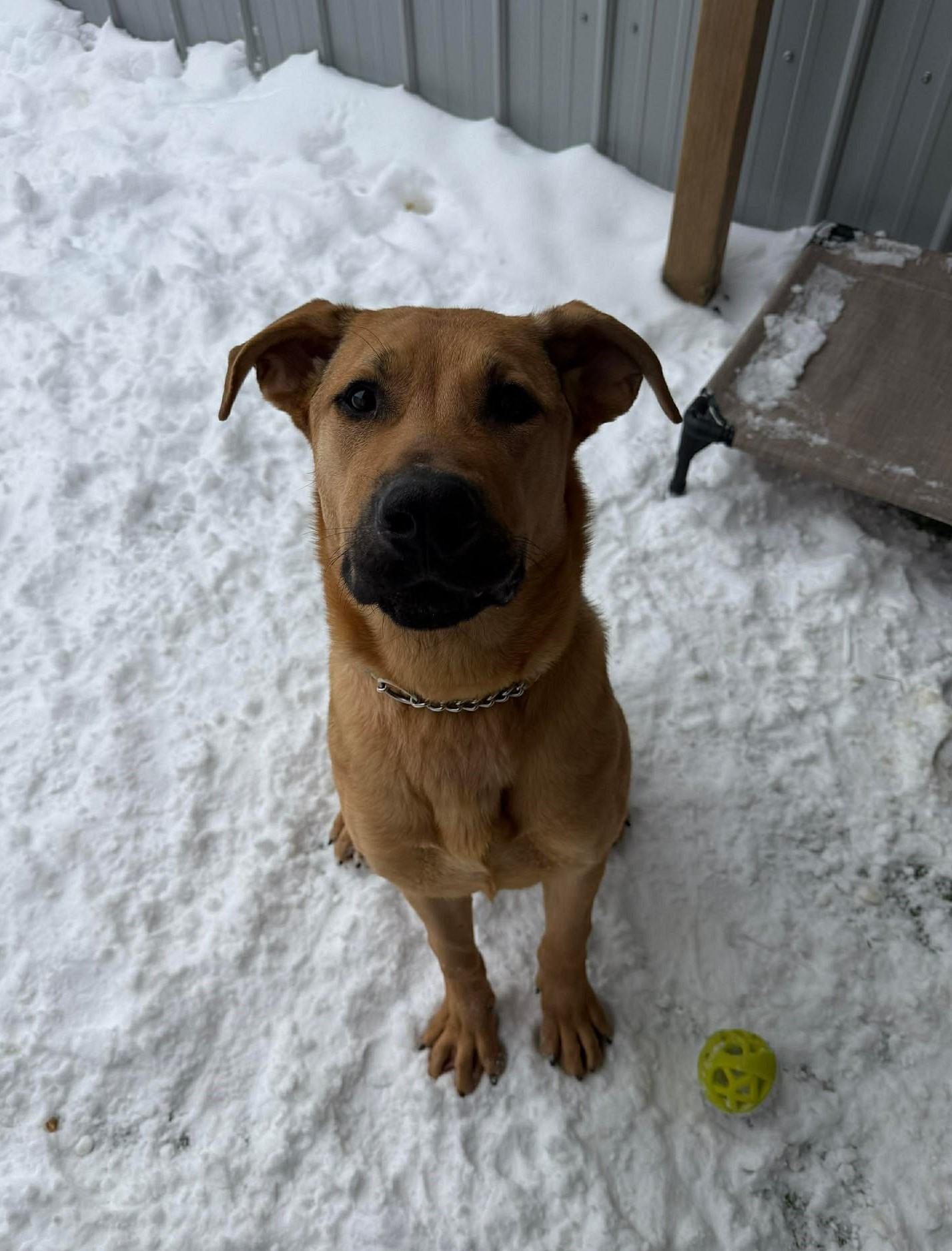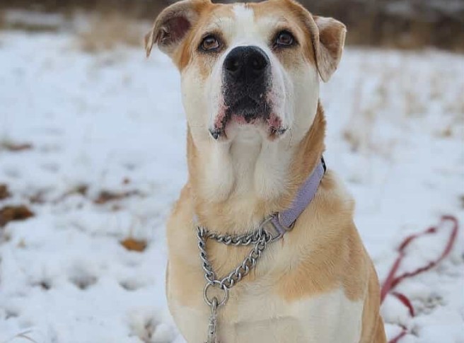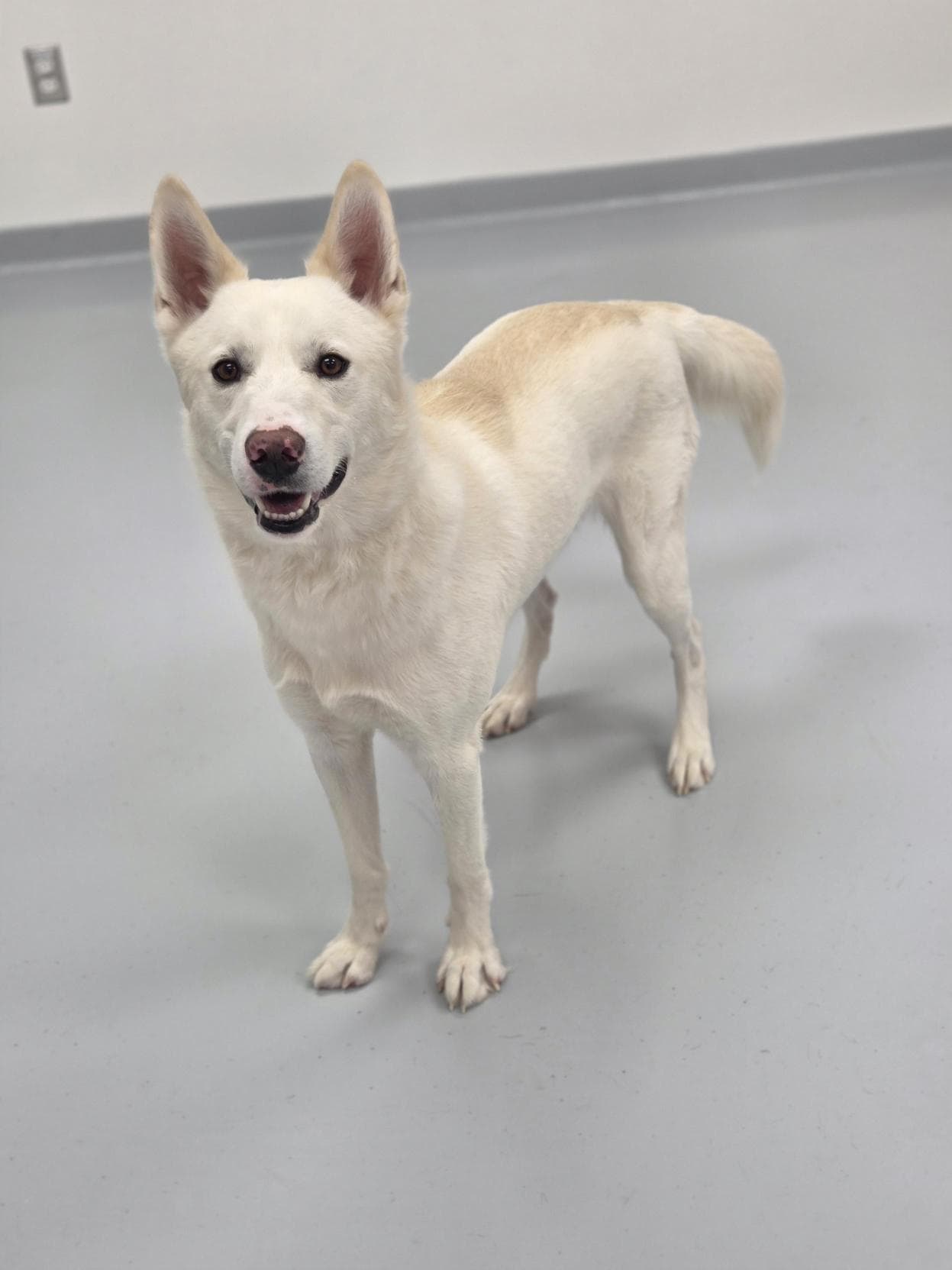 Une jolie femelle de type croisé âgé de 1 an et demi et qui pèse 24 kg. Elle a été sauvée du commerce de viande de chien et est très craintive.
