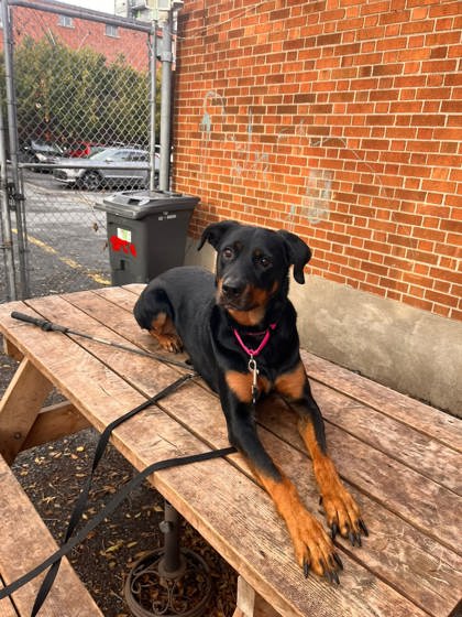 Rosie est une chienne généralement calme, mais qui adore jouer, surtout avec les jouets en corde. Elle a un bon potentiel d’apprentissage, mais aura besoin d’une famille prête à travailler avec elle sur certains comportements, notamment sa réactivité envers les chiens et certaines personnes.