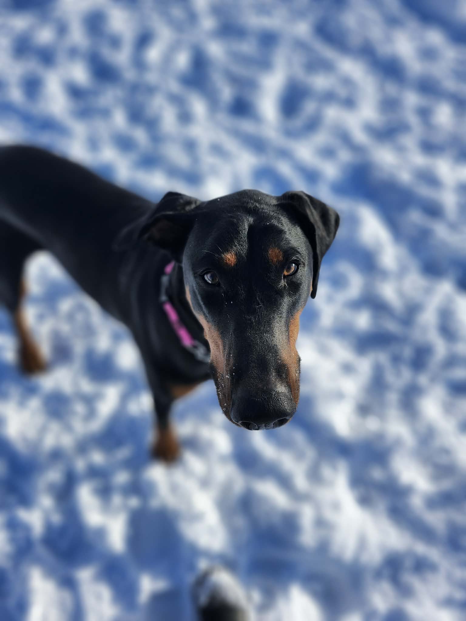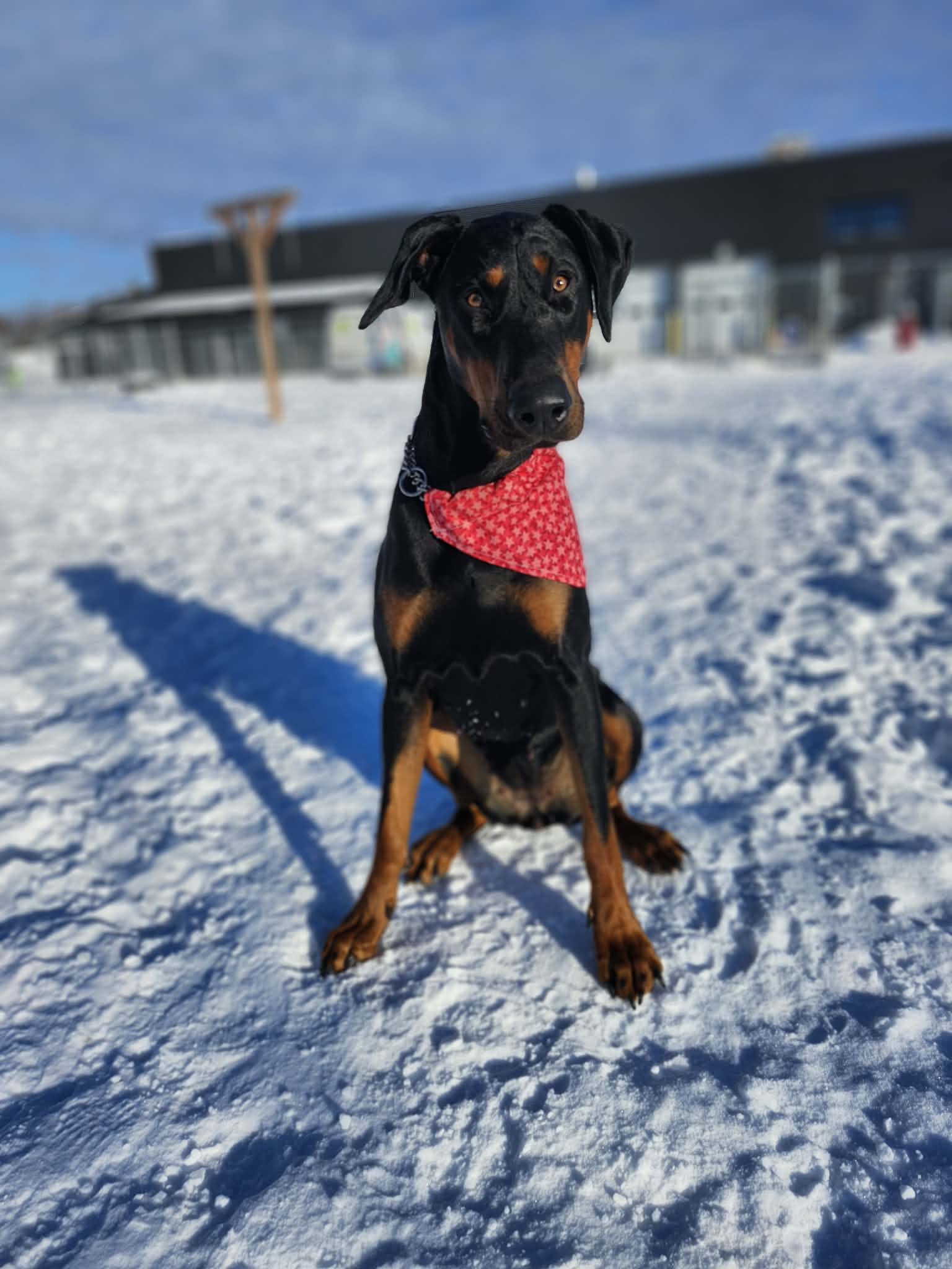 Salut, mon nom est Rosy! Je suis une jeune femelle Doberman encore très « ado » dans ma tête : débordante d’énergie, enthousiaste et parfois un peu impulsive.