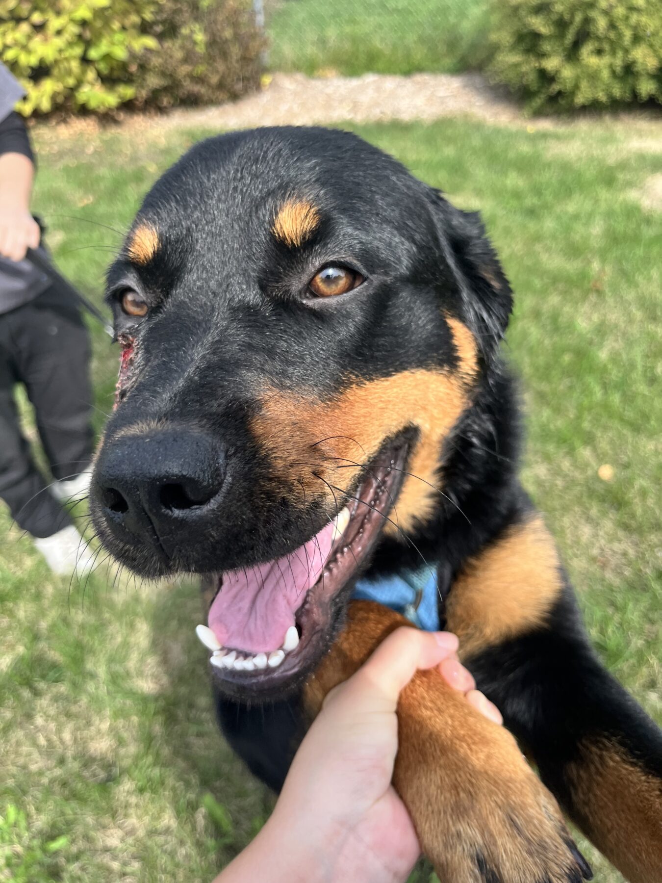 En effet, je suis arrivée au refuge sans histoire et portant des plaies sévères à la nuque et au visage. Très tôt, j’ai montré à mes gardiens de la SPA de l’Estrie que je n’étais pas près de laisser même une immense douleur avoir raison de ma bonne humeur! Je suis fringante, intrépide et dotée d’une profonde appétence pour les caresses et les périodes de jeu. À moins d’un couvre-chef nouveau, je suis enthousiaste dans mon approche de tout le monde, même les étrangers. Nommée exemplaire pour mon jeune âge et ma condition, je ne suis pas adorable que par mon physique, mais surtout par ma personnalité. Il faut noter toutefois que la propreté ne m’est pas acquise à 100%, et que nul ne sait si j’ai cohabité avec des chats et, si oui, comment ça s’est passé.