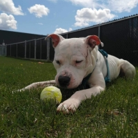 La SPA n’a pas beaucoup d’informations sur mon passé. Ne vous fiez pas à mon âge, j’ai l’énergie d’un jeune chien! J’ai besoin de bouger, explorer, mastiquer et gruger. Bref, j’ai besoin d’être stimulé autant mentalement que physiquement. Donnez-moi des tâches à effectuer et je serai comblé. J’adore me rouler dans l’herbe et jouer à la balle. Une fois mes besoins de dépenses comblés, je suis un vrai pot de colle. J’ai cohabité avec un autre chien et ne semble pas avoir de réaction envers mes colocataires du refuge.