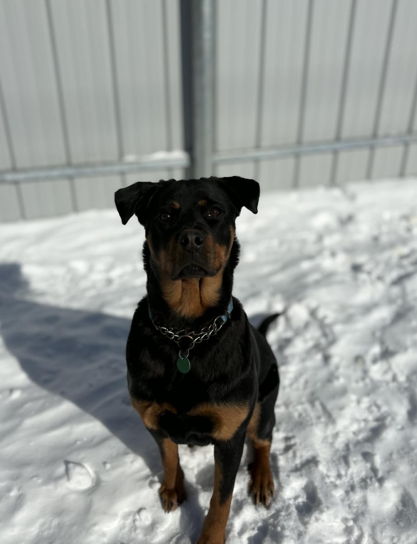 Une superbe femelle de race croisée âgée de 3 ans et pesant 23 kg.