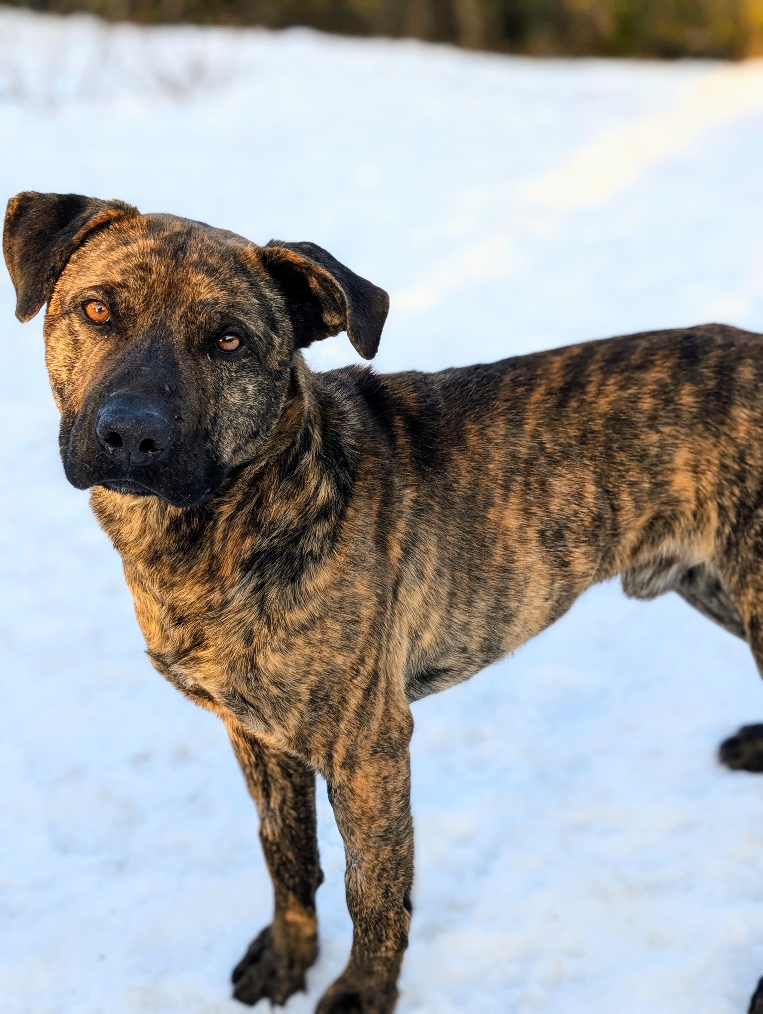 En conclusion, je suis un compagnon attachant et affectueux qui cherche une famille présente, compréhensive et active avec qui je pourrai jouer, partir à l’aventure et profiter du grand air pour dépenser mon énergie quotidiennement. J’ai encore beaucoup à apprendre dû à mon passé et tout ce que je souhaite c’est de faire ces apprentissages main dans la patte avec des humains patients et aimants. J’aimerais vivre dans un environnement stable et sécuritaire avec une cour clôturée pour que je puisse enfin jouir de liberté. Avec de la constance et beaucoup d’amour, je deviendrai un compagnon loyal, joyeux et profondément reconnaissant. »