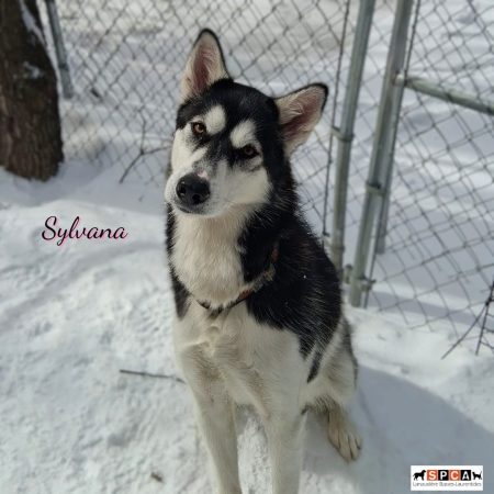 Une mignonne petite femelle de type Husky croisé âgée de 8 mois et pesant 40 livres