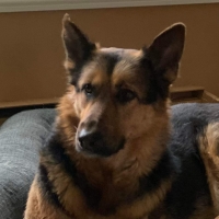 Un magnifique mâle de type Berger allemand croisée âgé de 3 ans et pesant 80 livres.