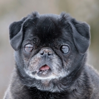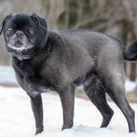 Une adorable femelle âgée de 10 ans, de race Carlin qui a été abandonné, attachée à la porte d’un centre vétérinaire. Malgré ses yeux nuageux et son museau gris, elle ne méritait pas de se faire abandonner dehors par une journée pluvieuse et humide.