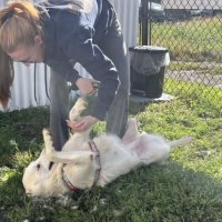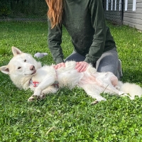 Lorsqu’elle est suis arrivée ici, elle avait une ancienne fracture de la tête fémorale qui a été gérée en chirurgie. Malgré tout, elle reste très active et a besoin d’une famille qui l’amènera courir, faire de la randonnée et jouer.
