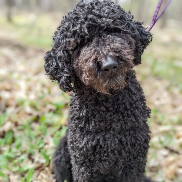 Une charmante femelle d’expérience de type Caniche croisé âgée de 12 ans et pesant 27 kg.
