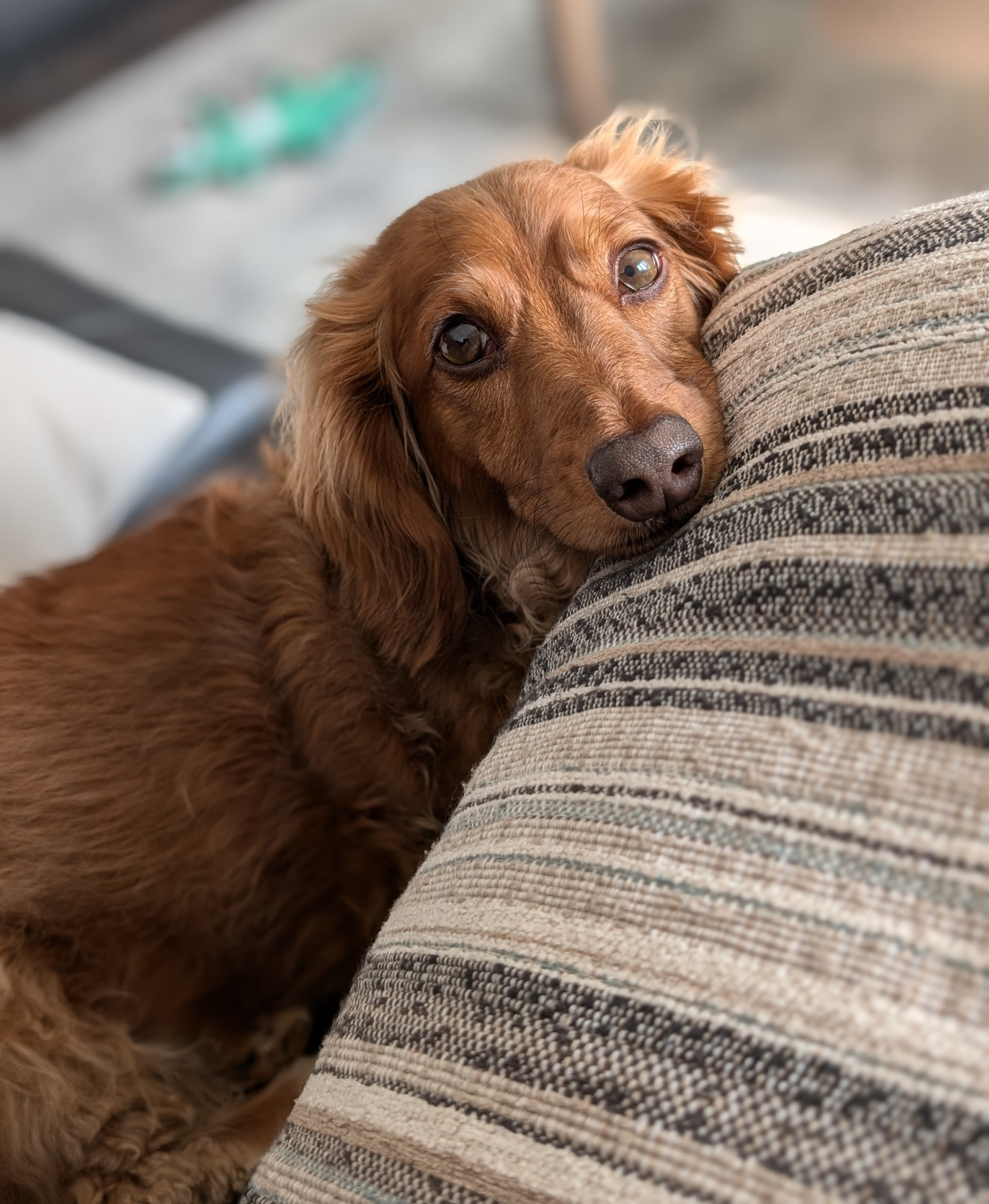 Une magnifique femelle de type Teckel croisé âgée de 5 ans et pesant 15 livres.