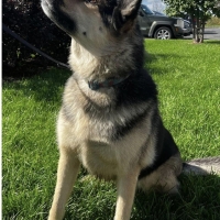 Une superbe femelle de type Berger allemand croisé Husky âgée de 2 ans.