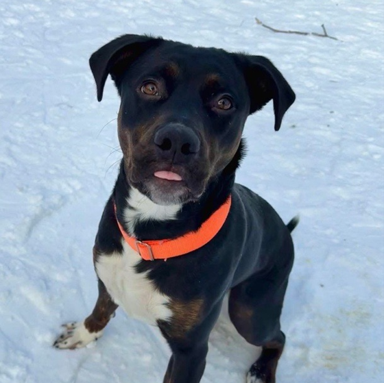Une adorable femelle d’expérience de type croisé d’âge inconnu et pesant 46 livres.