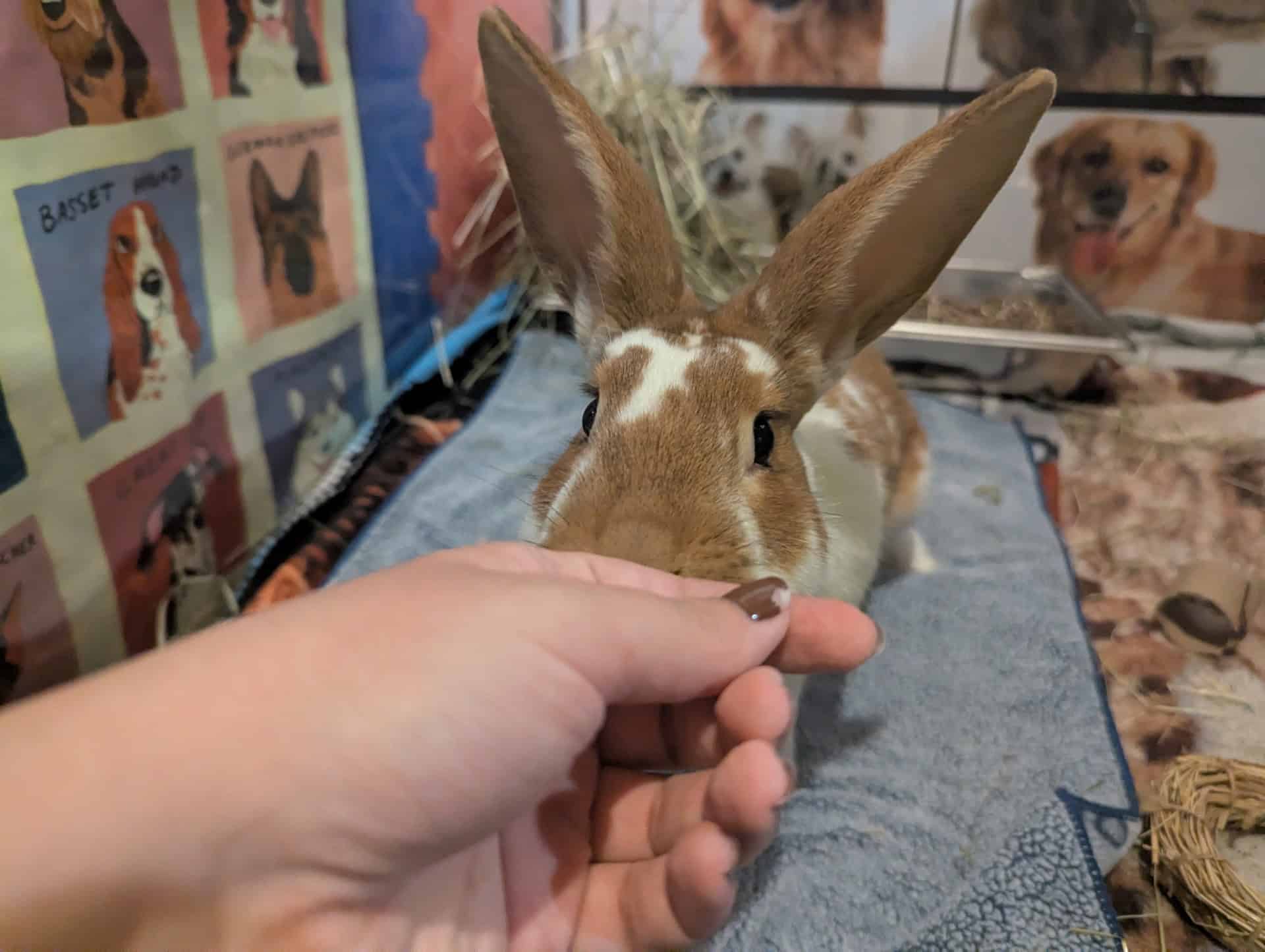 Avec de la patience et du respect pour son rythme, Baloo s’est révélé être un petit lapin curieux, capable de créer un vrai lien de confiance rapidement. Il vient maintenant volontiers à la rencontre des humains, surtout lorsqu’il y a de la nourriture en jeu, et explore son environnement avec assurance.