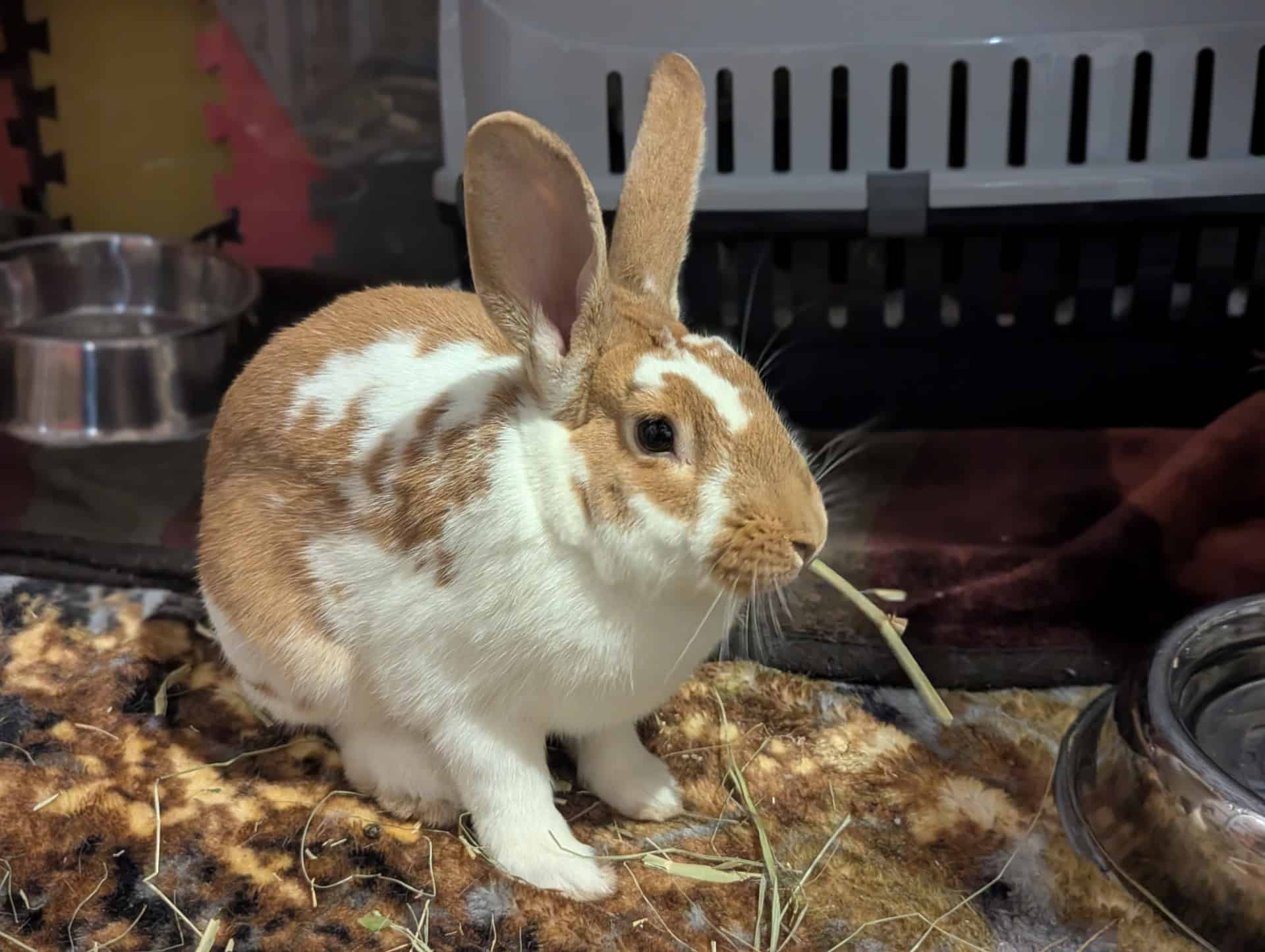 Sa compatibilité avec les chiens, chats et enfants n’a pas été testée. Il cohabitait avec un autre lapin mâle au refuge.