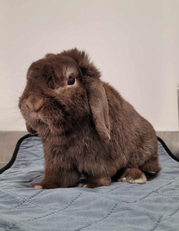un magnifique lapin bélier mâle, arrivé après avoir été trouvé errant.