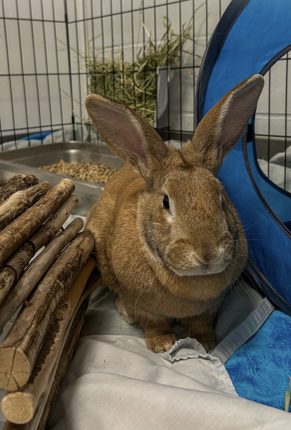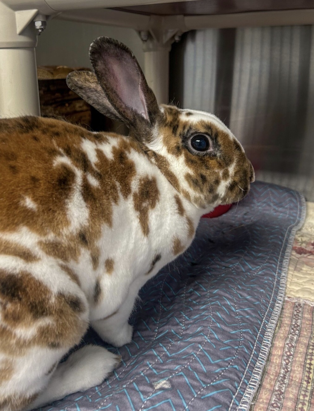 Elle adore les activités liées à la nourriture, que ce soit une boîte de fouille ou un distributeur de moulée. Elle adore aussi quand les enfants de sa famille d’accueil cachent sa portion de verdure dans son enclos.