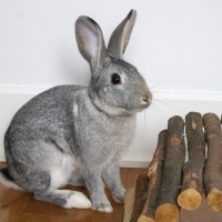 Trouvé dans un parc alors qu’il n’avait que quelques semaines, Bunny est un lapin sociable qui aime se faire flatter et suivre son humain.