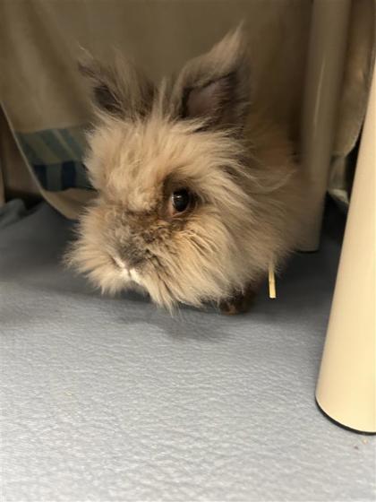 Cally est calme. Elle devra être adoptée en cohabitation avec un autre lapin.