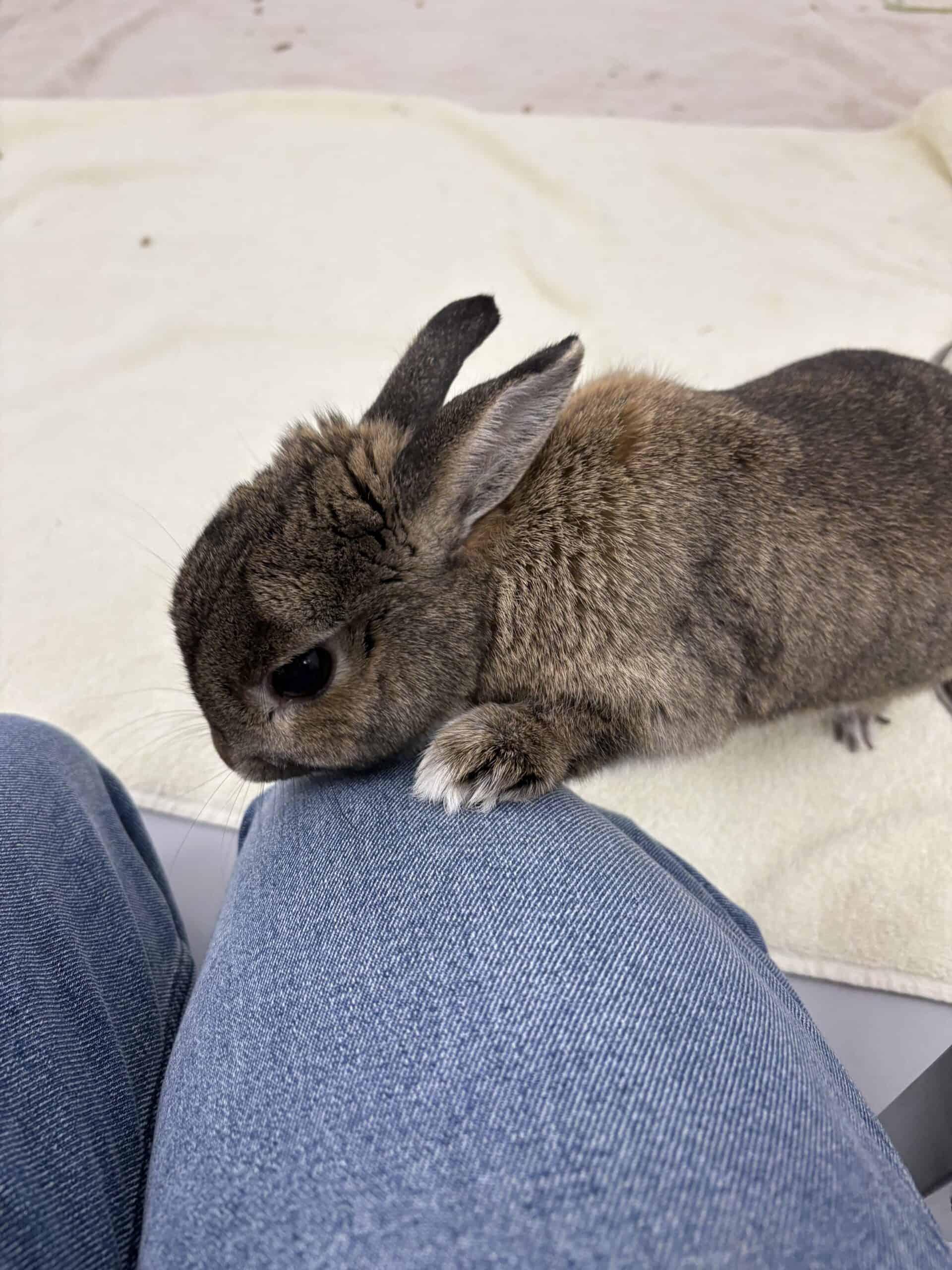 Ce petit bout de poils est un lapin nain mâle au caractère en or. Calme et doux, il adore observer ce qui l’entoure et vient volontiers vers l’humain par curiosité. Très câlin, il apprécie les moments de tendresse et les caresses en toute tranquillité.