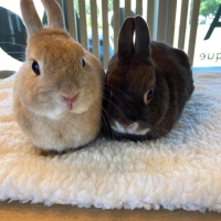 La propreté en litière est en apprentissage. Ils pourront habiter avec un chat ainsi que des enfants comprenant les règles et respectueux des lapins. Ils pourront aussi cohabiter avec une lapine stérilisée. Ils sont tous les deux habitués aux chiens et aux chats.