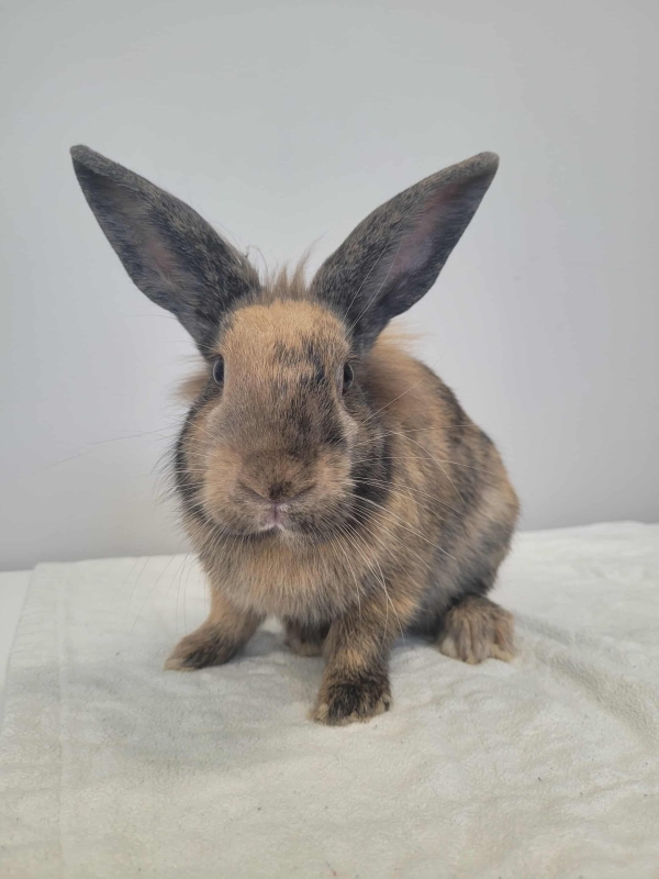 un magnifique lapin mâle arrivé errant au refuge. Nous ne connaissons pas son âge exact, mais une chose est certaine : il ne passe pas inaperçu avec ses superbes couleurs et son allure élégante.