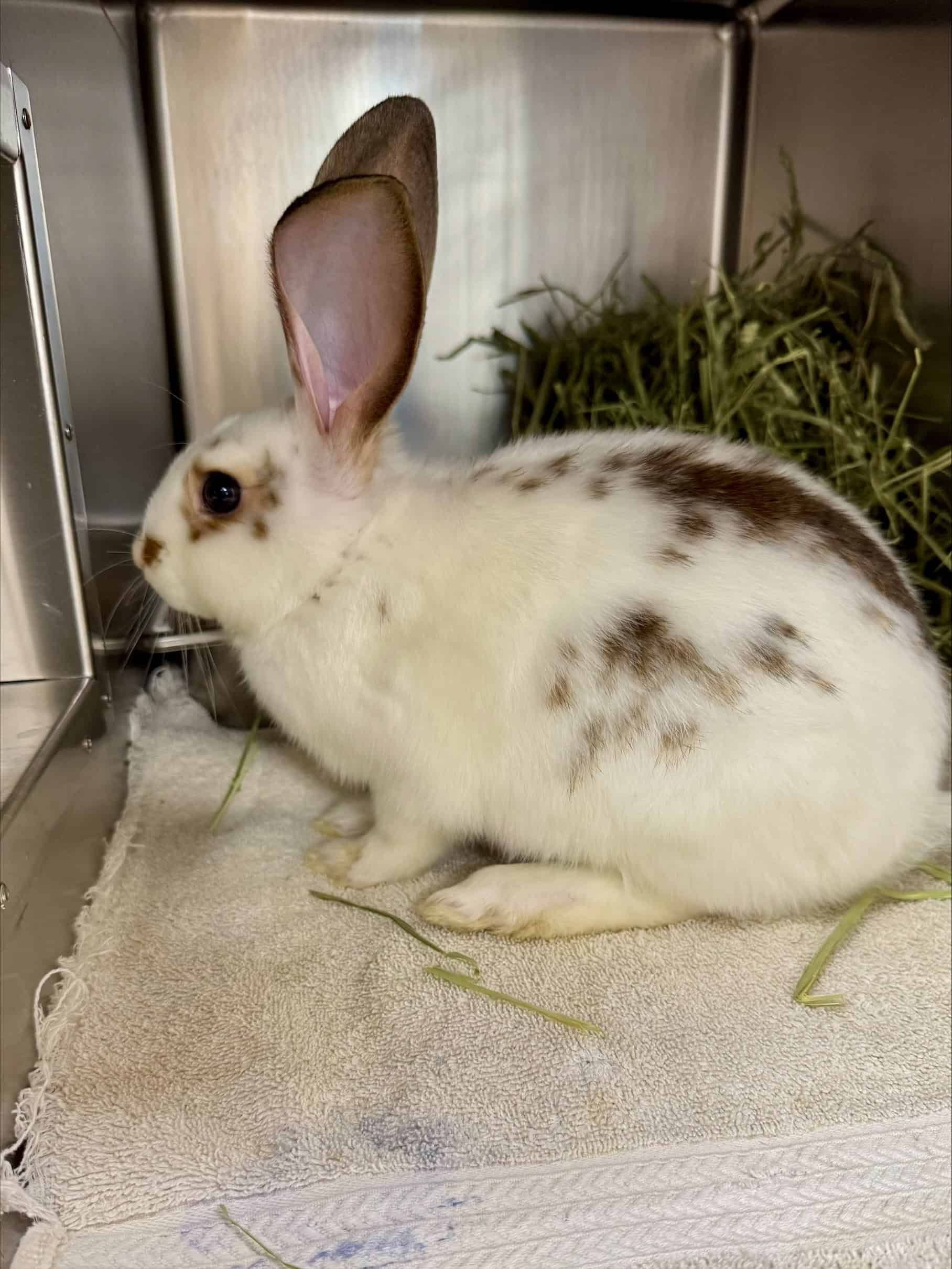 Curieuse sans être brusque, Flocon observe le monde avec tranquillité et délicatesse. Lapine douce et calme, elle aime venir à votre rencontre, surtout lorsque l’ambiance est paisible. Les personnes calmes sont ses préférées : elle apprécie les moments de sérénité, les présences rassurantes et les échanges tout en douceur. Flocon est une compagne apaisante, idéale pour un foyer tranquille où elle pourra s’épanouir en toute confiance.