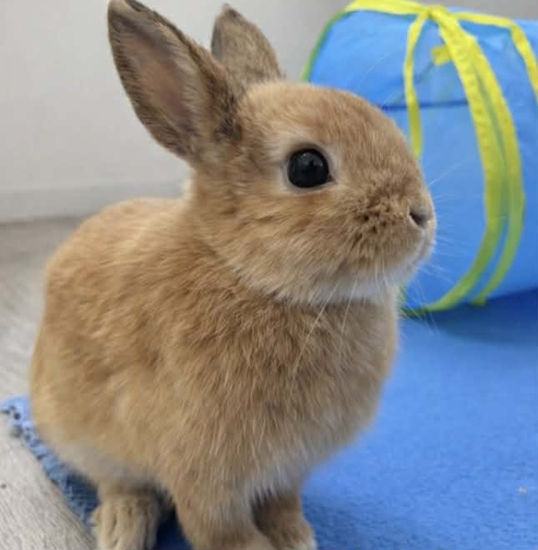 un adorable petit lapin nain mâle de 3 mois qui débute tout juste sa découverte du monde.
