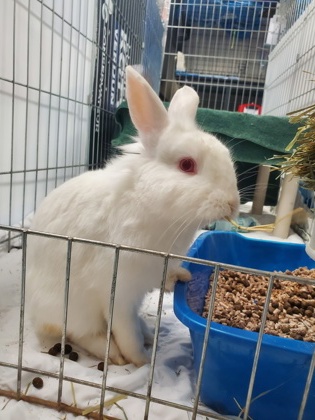 Elle est majoritairement propre en litière et n’a pas tendance à gruger. Avec ses yeux rouges, elle risque de passer inaperçue face a d’autres lapins plus ”populaire”, mais nous croyons qu’elle finira par toucher un cœur.